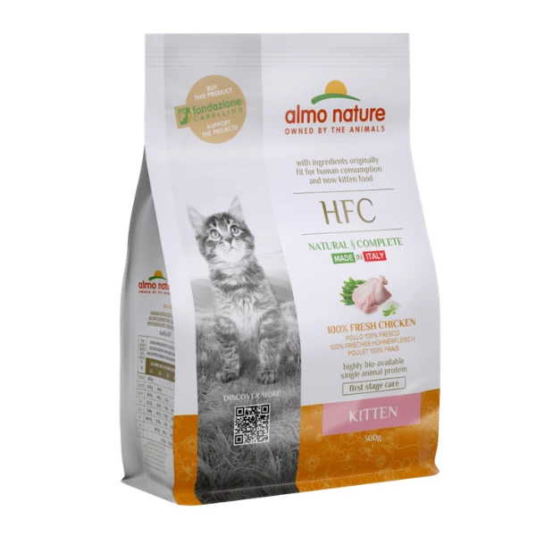 Almo Nature HFC Gatto Kitten Pollo sono croccantini della linea HFC che è la nuova gamma di crocchette Almo Nature ed è disponibile in diversi gusti per soddisfare ogni gatto. Tutte le ricette contengono carne o pesce freschi. Questo garantisce un pasto appetibile e nutriente, che soddisfa al meglio il fabbisogno nutrizionale del gatto, fornendo proteine animali di alta qualità.