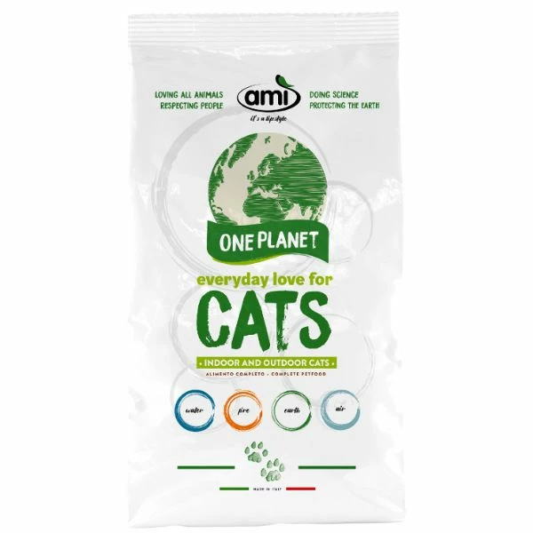 Linea One Planet Amì: Le crocchette e gli umidi secondo Ami per l’alimentazione quotidiana di cani e gatti, la qualità senza compromessi, la nutrizione secondo la scienza, l’amore secondo il nostro stile di vita.