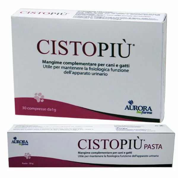 Cistopiù è il mangime complementare indicato per favorire la funzione fisiologica dell’apparato urinario di cani e gatti. È utile per contrastare le cause di disturbi alle basse vie urinarie. Disponibile in compresse o pasta appetibile.
