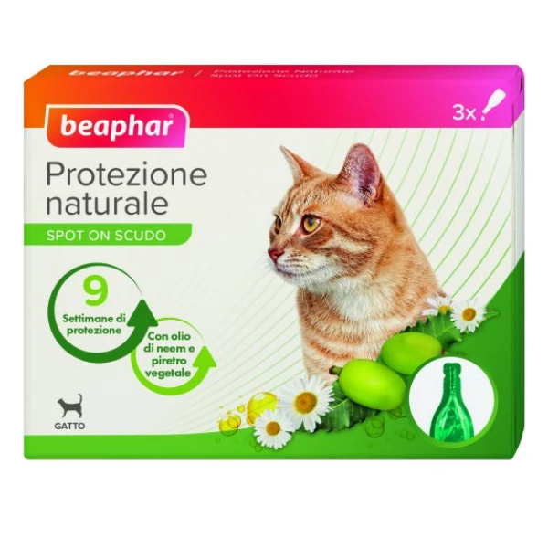 Beaphar Protezione Naturale Spot On è adatto per gatti cuccioli e adulti. Ogni confezione contiene 3 pipette da 0,4 ml o 1 ml.