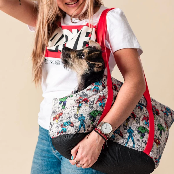 La Borsa trasportino Marvel For Fan Pet è l’accessorio ideale per gli amanti del tema Marvel. Hulk, Capitan America e non solo, sono rappresentati su tutta la borsa/trasportino. Dal materiale leggero e dalle dimensioni modeste, il tuo cane amerà questa borsa…e tu anche!