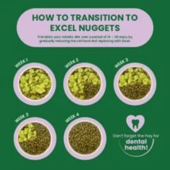 Excel Adult Light Rabbit Nuggets con menta è un alimento per conigli, con vitamine e minerali e prevengono l’alimentazione selettiva. Adatto a conigli adulti in sovrappeso, di età superiore alle 16 settimane di vita.