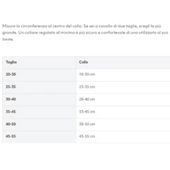- La misura ideale del collare comprende la circonferenza del collo del cane (es. collo 38cm = collare 35-45cm). In caso di dubbi (misura del collo al limite della taglia), preferire la taglia maggiore.