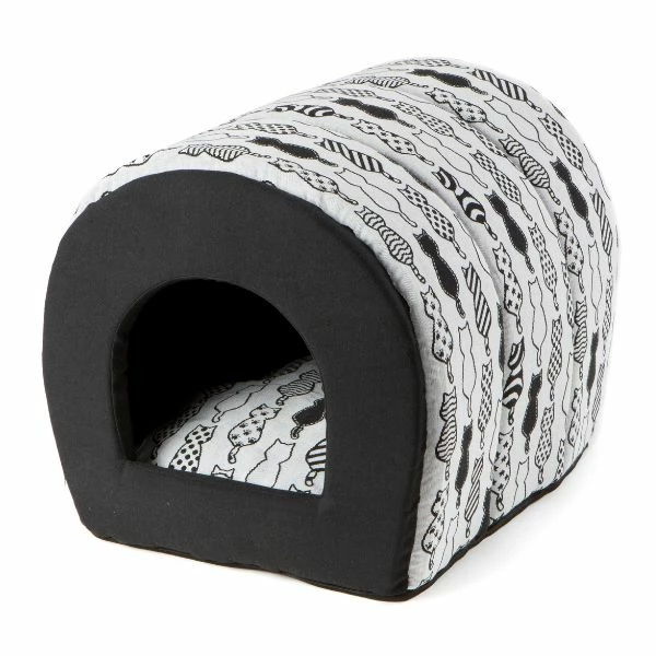 La Cuccia tunnel Mix Cats Range Vulcano Leopet è prodotta in gomma piuma a foma di tunnel, con cuscino estraibile imbottito con morbida fibra di poliestere metà fantasia e metà tinta unita, base antiscivolo.