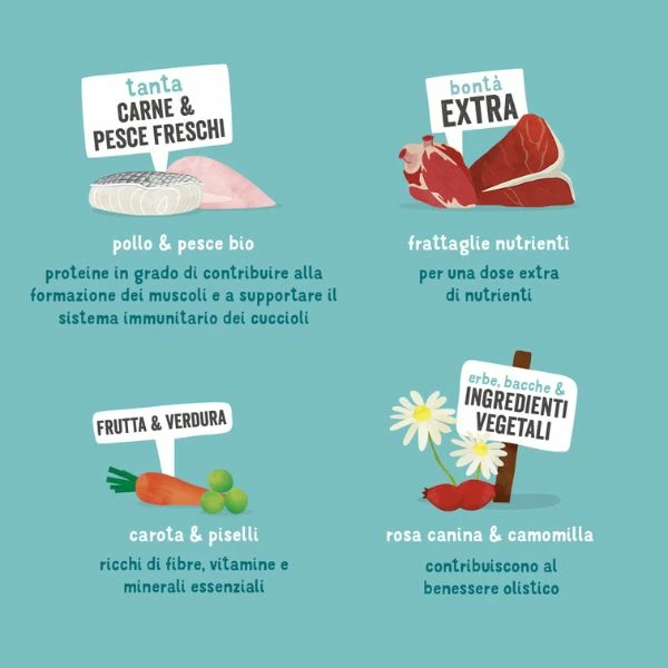 Consulta la sezione Ingredienti per una scelta più approfondita. L’ottimale crescita del tuo cane, parte da una nutrizione bilanciata ed equilibrata.