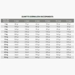 Istruzioni per l’uso: si raccomanda di richiedere il parere di un veterinario prima dell’uso e prima di estendere il periodo di impiego. Somministrare i quantitativi indicati riportati in tabella in base al peso del cane, come unica fonte di cibo.