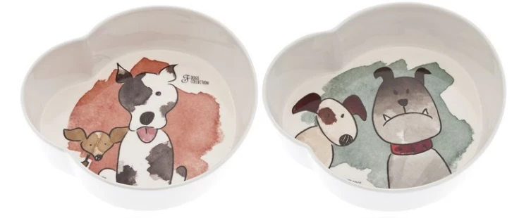 Ciotole Happy è una comoda e pratica ciotola per cani con capienza 450 ml. Decorate con diversi motivi e disegni. Set da 2 ciotole.