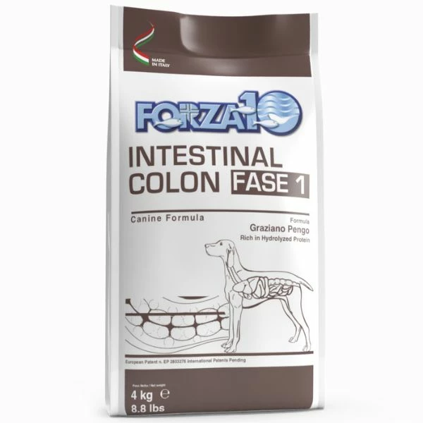 Forza10 Active Cane Intestinal Colon Fase 1 è un alimento dietetico completo per cani adulti per la riduzione dei disturbi dell’assorbimento intestinale e la compensazione della cattiva digestione.