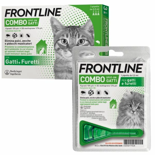 Frontline Combo Pipette per Gatti è uno spot per gatti e furetti. Le Pipette Combo sono efficaci su zecche, pidocchi, pulci adulte, uova e larve di pulci. Il prodotto deve quindi impedire la comparsa di nuovi parassiti proteggendo il gatto e l’ambiente in cui vive.