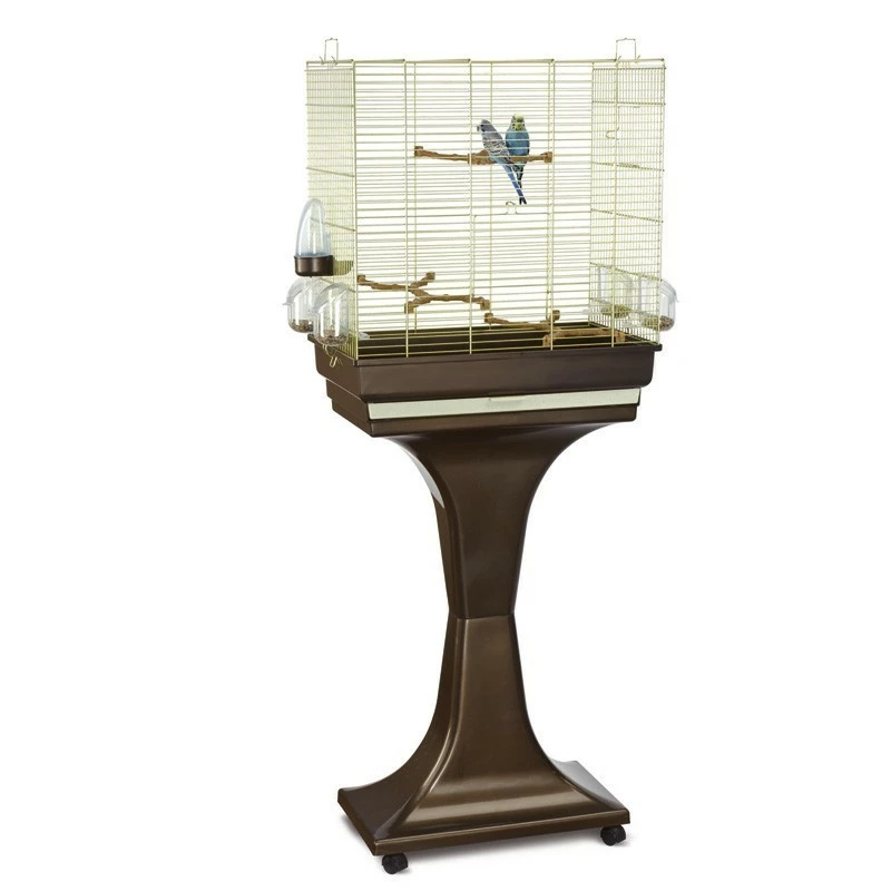 La gabbia Camilla è una gabbia per canarini, cocorite e piccoli esotici a base rettangolare, essenziale ma spaziosa e comprensiva di piedistallo, in plastica marrone per la versione ottonata e blu avio nella versione bianca, con ruote piroettanti. La gabbia si pulisce in un attimo grazie al fondo in