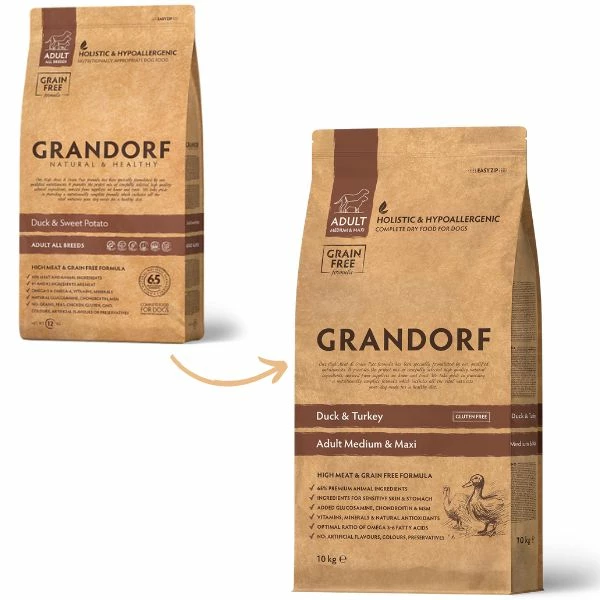 Grandorf Dog Adult Medium/Maxi Grain Free Anatra e Tacchino è l’alimento completo secco completo, formulato per cani di taglia media/grande. Ideale per cani sensibili agli ingredienti e senza grano incluso nella ricetta.