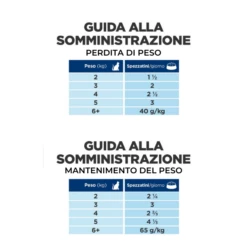 Quantità raccomandate: vedi immagini illustrative. Determinare la quantità da somministrare in base al peso ideale e non in relazione al peso attuale.