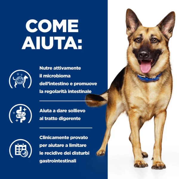 Hill’s Prescription Diet Gastrointestinal Biome è un alimento dietetico completo che offre tutta la nutrizione di cui ha bisogno il vostro cane adulto. Consultare il proprio veterinario per ulteriori informazioni su come i nostri alimenti PRESCRIPTION DIET possono aiutare il vostro cane a continuare a godere di una vita felice ed attiva.Â