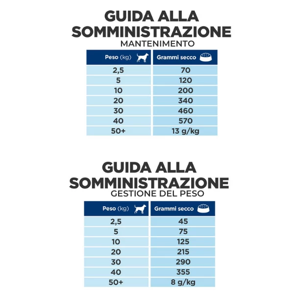 Informazioni aggiuntive: Anche un leggero sovrappeso, può condizionare la qualità di vita del tuo cane e le relazioni all’interno della famiglia, poichè un peso extra può limitare il gioco, influenzare la mobilità e alterare la salute generale. Mantenere il peso ideale può aiutare a determinare le aspettative di vita, riducendo il rischio delle patologie associate a problemi di peso.