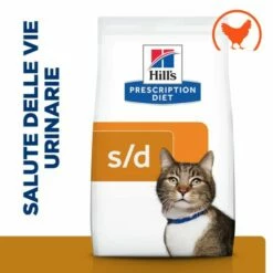 Hill’s Prescription Diet s/d è un alimento dietetico completo per la dissoluzione dei calcoli di struvite nei gatti adulti (causa di patologie alle basse vie urinarie del gatto, FLUTD). Supporto per la salute urinaria del tuo gatto.