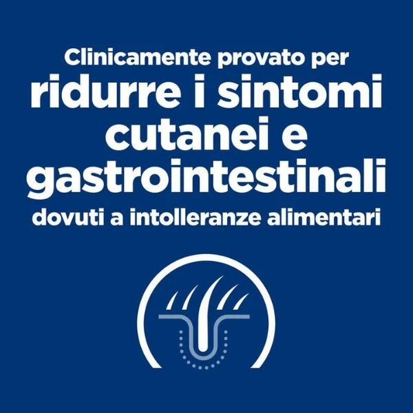 Le sensibilità e le intolleranze alimentari sono problemi potenzialmente gravi che possono provocare irritazioni della pelle, del pelo e delle orecchie o persino disturbi gastrointestinali. I cani che hanno reazioni avverse al cibo dovute a un’allergia alimentare o un’intolleranza traggono beneficio da un alimento progettato per le sensibilità alimentari. I nutrizionisti e i veterinari di Hill’s hanno sviluppato la nutrizione clinica Prescription Diet z/d appositamente formulata per ridurre i segni cutanei e gastrointestinali causati dalle intolleranze alimentari. Difatti z/d è un alimento clinicamente testato per aiutare a evitare reazioni avverse al cibo.