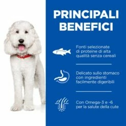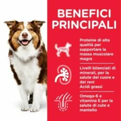 - NON raccomandato per Cuccioli, femmine in gravidanza e in allattamento e cani maturi. Durante la gravidanza e l’allattamento, le femmine dovrebbero passare all’alimento per cuccioli Hill’s Science Plan Puppy