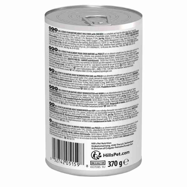 Hill’s Science Plan Mature Adult 7+ Alimento per cani 370 gr è un alimento completo per i cani più anziani oltre i 7 anni d’età. Il tuo cane amerà la morbida e liscia consistenza di questo cibo umido. Correttamente bilanciato per fornire le appropriate quantità di energia e per supportare il peso corporeo ideale nei cani maturi.