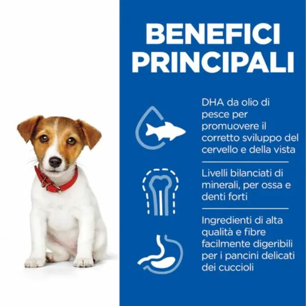 Hill’s Science Plan Small & Mini Puppy Alimento per Cuccioli con Pollo è un alimento completo e di alta qualità per cuccioli di cani di taglia piccola dalle 4 settimane fino a 12 mesi d’età, e per femmine in gravidanza o allattamento.