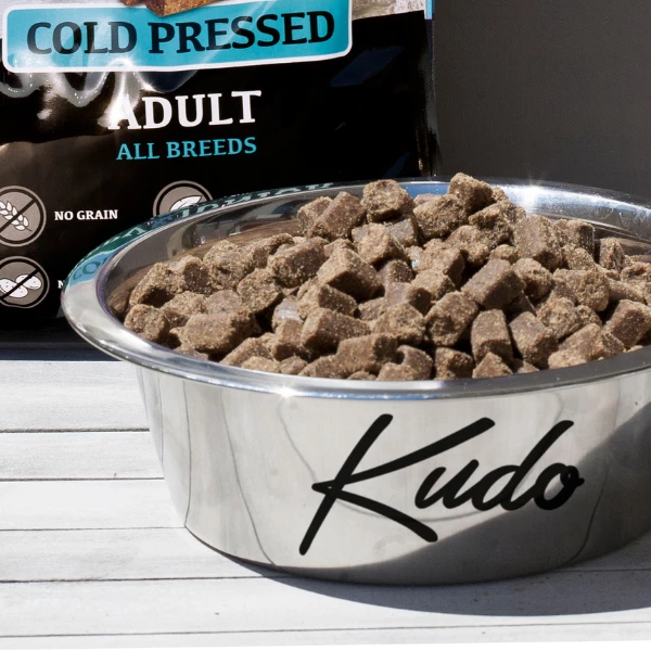 Importante: Utilizzare il dosatore Kudo o una bilancia di precisione da cucina. Non utilizzare altri misurini per crocchette, il cibo pressato a freddo è molto più concentrato.