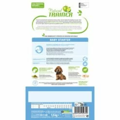 Natural Trainer Baby Starter All Size con Pollo fresco è l’alimento completo ed equilibrato per cuccioli da svezzare e cagne nell’ultima fase della gestazione o in lattazione. Favorisce la transizione dal latte al cibo solido per animali.