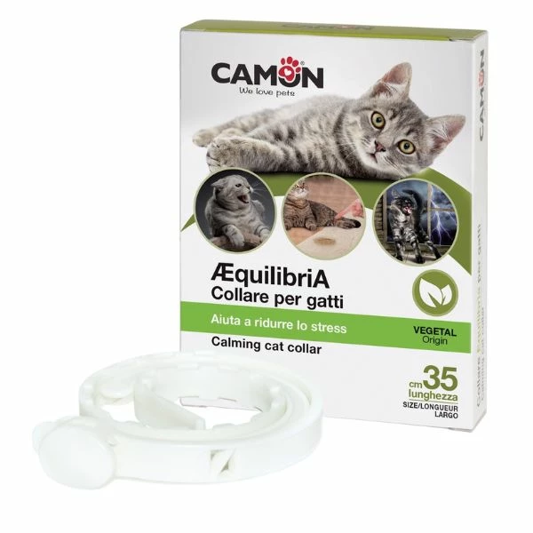Il Collare AEquilibriA per gatti aiuta a ridurre lo stress del tuo gatto, evitando l’uso di sedativi, in circostanze quali traslochi, inserimento di altri animali nel nucleo familiare, viaggi, temporali, fuochi d’artificio, visite del veterinario, ansia da separazione, ecc.