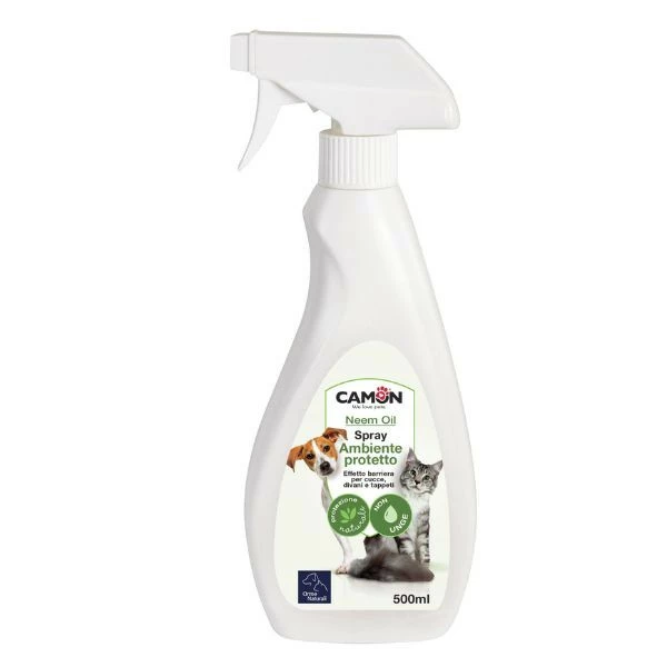 Questo Spray Protettivo per ambienti Orme Naturali, grazie alla sinergia di olio di Neem e oli essenziali di menta e limone, crea un effetto barriera su cucce, divani, tappeti, piante ornamentali, tappezzerie dell’autovettura e su tutte le superfici a contatto con bambini e animali domestici.