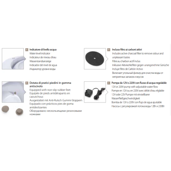 | Modello | 1 conf da 2 filtri, Fontana 32 x 28 x 13 cm |