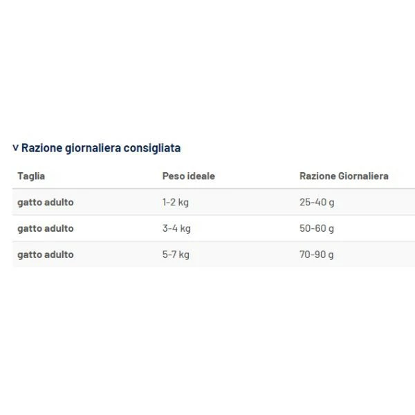 | gatto adulto | 1-2 kg | 25-40 g |