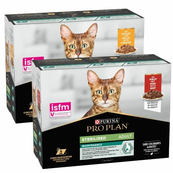 Pro Plan Sterilised. È importante dare ai gatti sterilizzati la giusta alimentazione. Purina Pro Plan offre una vasta gamma di alimenti appositamente formulati per gatti sterilizzati, in grado di soddisfare ogni bisogno specifico – dal mantenimento della forma ideale, al sostegno immunitario al mantenimento della salute digestiva e renale.