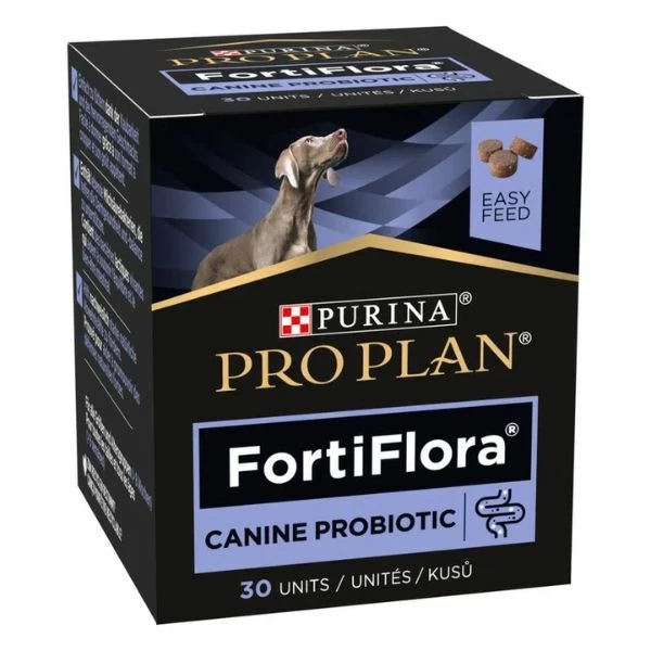 Purina Veterinary Diets Fortiflora Canine Probiotic Chews è un alimento complementare probiotico per cani e cuccioli, per aiutarli a supportare il loro benessere e l’equilibrio intestinale.