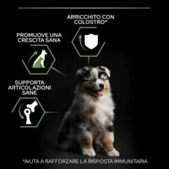Il primo anno di vita del tuo cane è fondamentale per la loro salute a lungo termine. Per aiutare a rafforzare le naturali difese dei cuccioli per un inizio di vita ottimale, i veterinari e i nutrizionisti Purina hanno sviluppato questa ricetta prelibata con lo speciale ingrediente del colostro, primo latte materno ricco in anticorpi naturali.