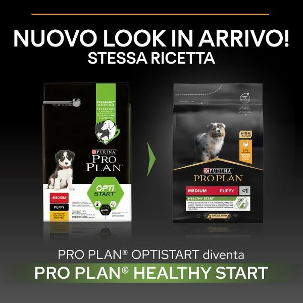 Purina Pro Plan Healthy Start Puppy Medium Crocchette Cane Pollo è un alimento completo per cuccioli di taglia media. Adatto anche per cagne in gestazione e/o allattamento. Contiene colostro, che è dimostrato supporti la risposta immunitaria