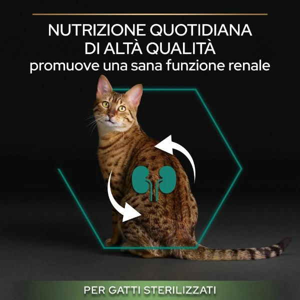 Purina Pro Plan Renal Plus Sterilised Adult 1+ con Tacchino è l’alimento completo secco per gatti adulti sterilizzati, formulato per promuovere una sana funzione renale nell’amico felino.