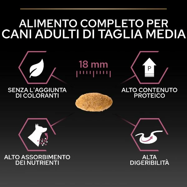 - alimento secco completo per cani adulti di taglia media, con peso tra 10 e 25 Kg