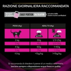 Razione giornaliera consigliata: vedi tabella illustrativa in gallery. Il periodo d’uso raccomandato è fino a 6 mesi. Si raccomanda di chiedere il parere di un medico veterinario prima dell’uso oppure prima di estendere il periodo di impiego. Lasciare sempre a disposizione acqua pulita e fresca. Disponibile anche in formato umido.