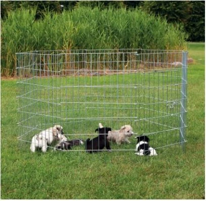 Recinto per Cuccioli di Trixie è un pratico recinto per cuccioli circolare, realizzato in metallo, con porta. Il recinto è composto da otto elementi, ognuno da 61 × 91 cm, ed inoltre vi è la possibilità di ampliarlo con un recinto aggiunto.