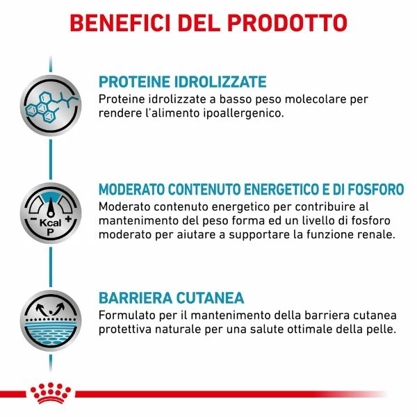 Royal Canin Hypoallergenic Moderate Calorie contiene proteine idrolizzate a basso peso
