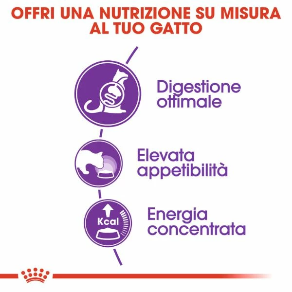Royal Canin ha sviluppato questo prodotto pensando alle particolari esigenze del gatto adulto, e in particolare a chi riscontra problematiche collegate all’apparato digestivo.