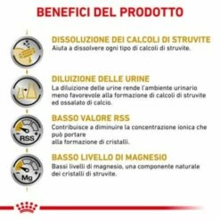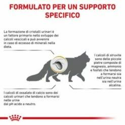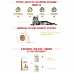Royal Canin Urinary S/O è un alimento dietetico completo destinato ai gatti. Le sue proprietà acidificanti dell’urina e la sua bassa concentrazione di magnesio lo rendono idoneo alla dissoluzione di calcoli di struvite ed alla riduzione delle recidive di calcoli di struvite. È anche indicato per le malattie dell’apparato urinario inferiore dei felini.