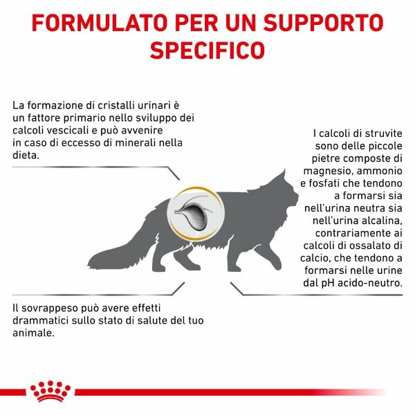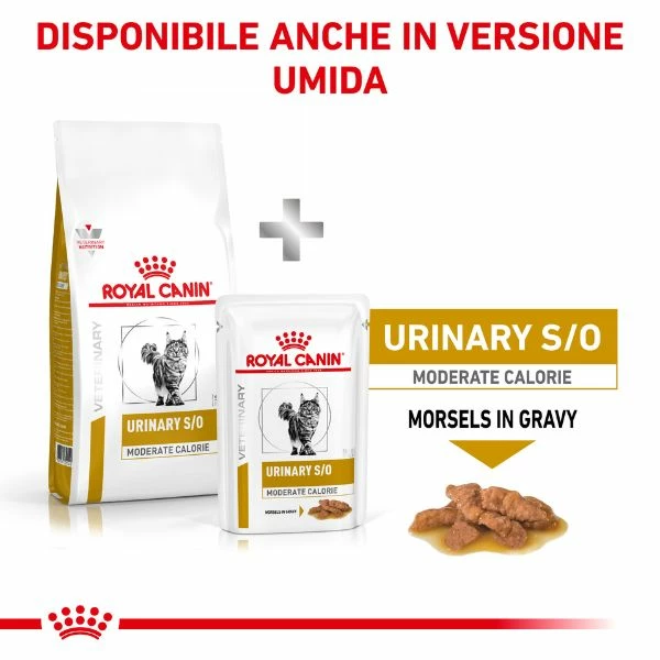 Royal Canin Urinary S/O Moderate Calorie aiuta a dissolvere tutti i tipi di calcoli da struvite.