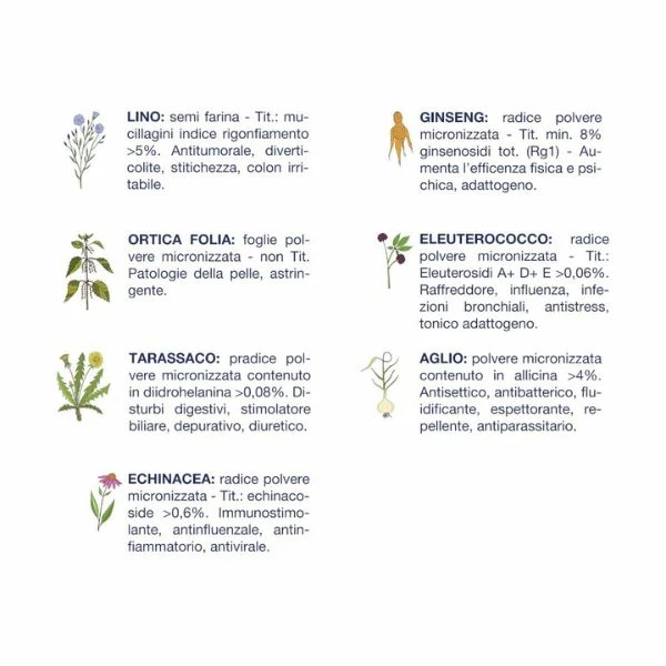 - Carni scelte: nelle farine di carne, spesso anche di provenienza mista, il contenuto in tossine allergizzanti (istamine, metalli pesanti) è molto più elevato che nelle carni fresche o disidratate. Tutta la gamma dei prodotti secchi è stata realizzata utilizzando proteine fresche, disidratate o idrolizzate.