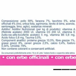 Consulta la sezione Ingredienti per una scelta più consapevole. La salute del tuo gatto proviene da una corretta e bilanciata nutrizione.